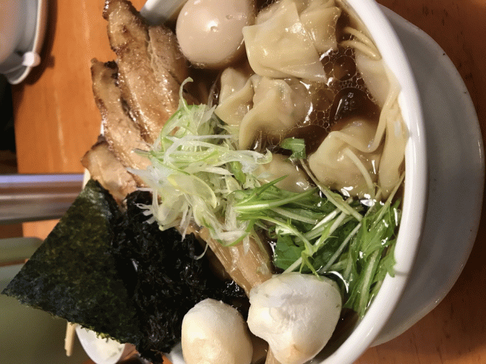 本当にワンタンが大きい!肉団子のようなワンタンが5つも入っていて食べ応えがある。