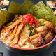 ゲンコツそのものがトロトロになる限界まで長時間炊き出し、2回の絹ごしを繰り返すシルク製法を採用。さらに新潟産の酒麹を加え低温で炊き出すことで、豚骨の臭みが抑えられたシルキーかつマイルドなスープが完成する!!濃厚なホワイト、マー油のブラック、辛味のレッド3種をベースに各種メニューをご用意☆※替え玉1玉無料!!
